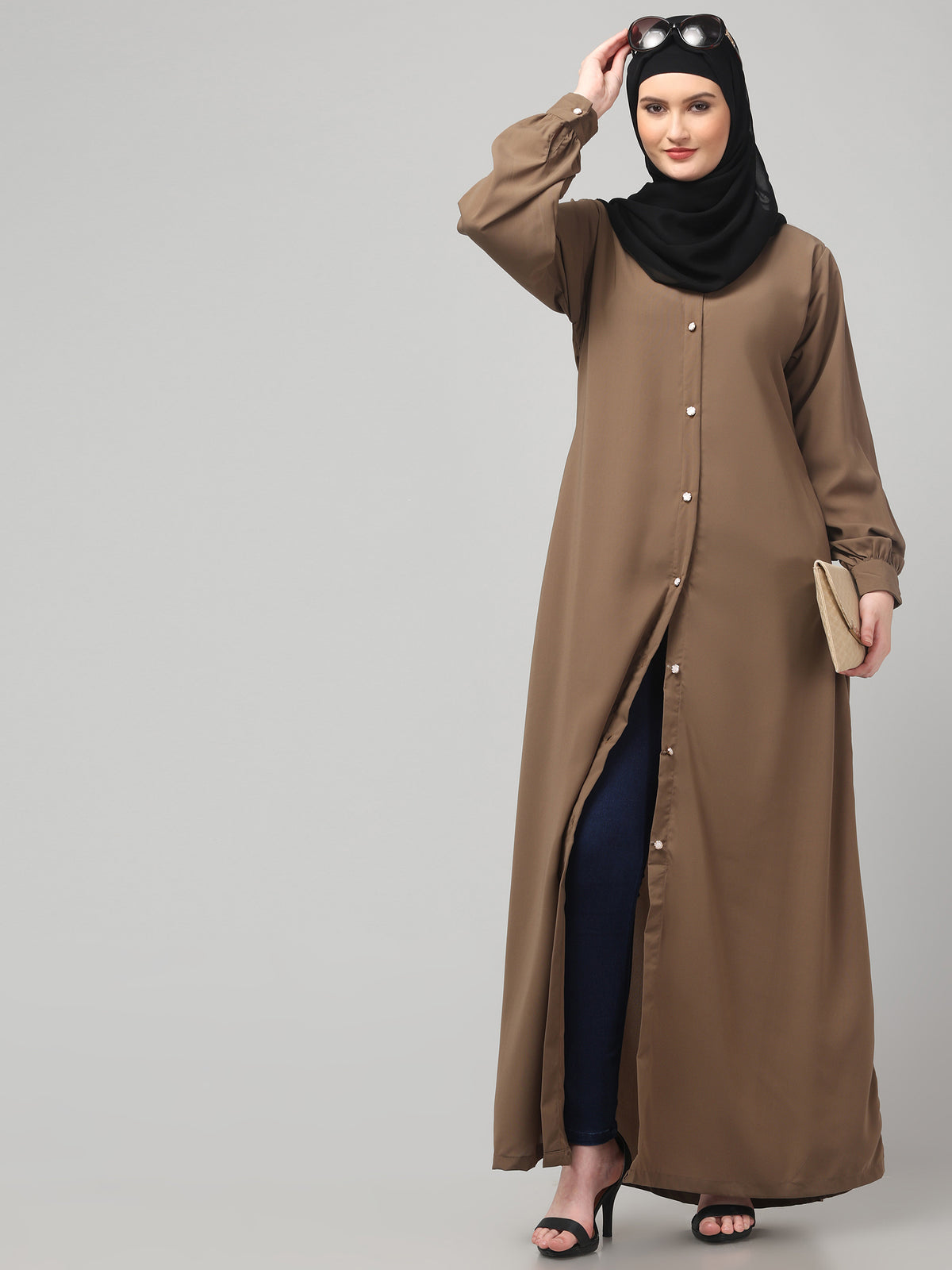 Front-Open Oat Abaya Burqa with Button Detailing